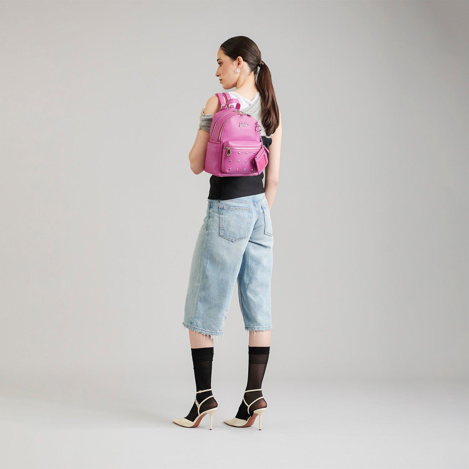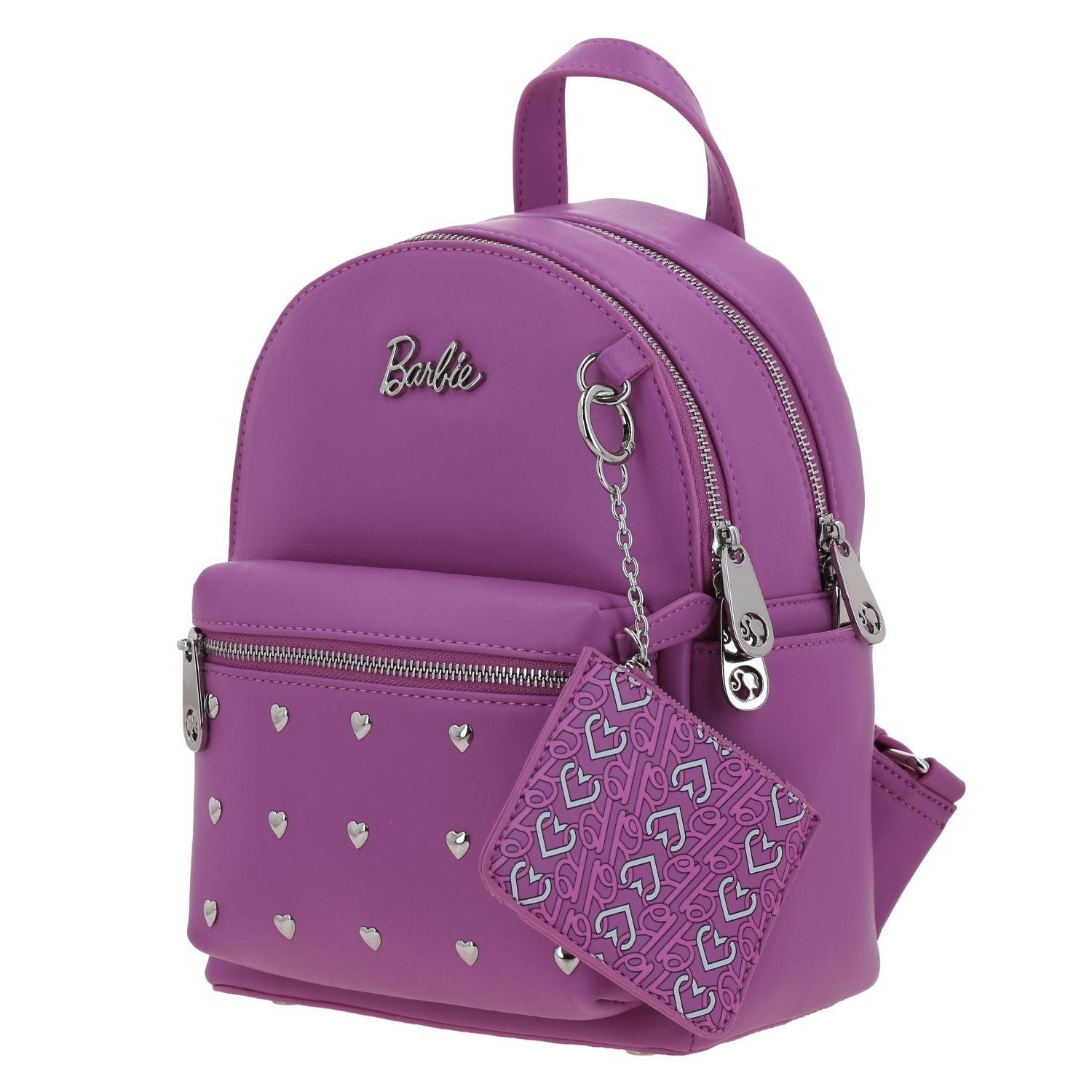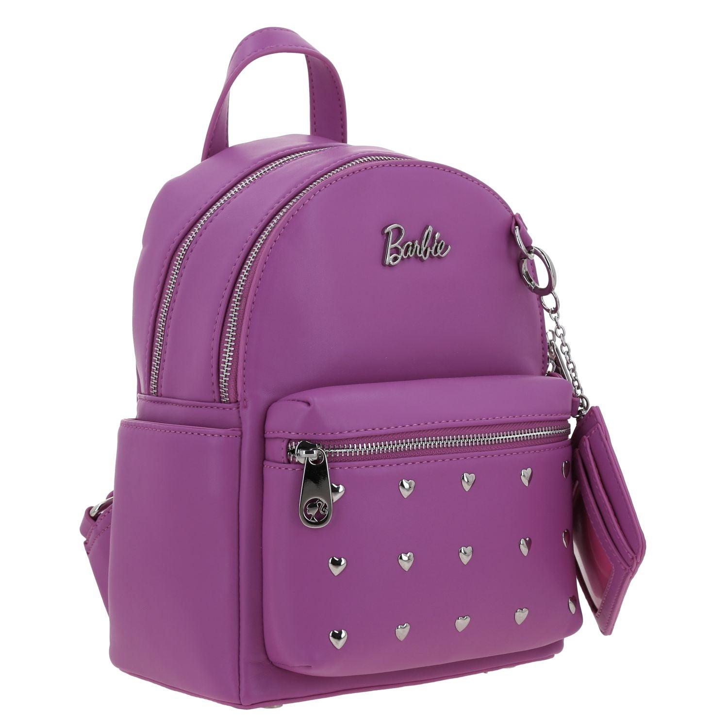 Mochila para mujer Barbie by Gorett en color rosa. Inspirada en Demi, con diseño en símil de piel y herrajes metálicos. Incluye compartimento principal con cierre y bolsillos internos. Ideal para un look moderno, sofisticado y funcional.