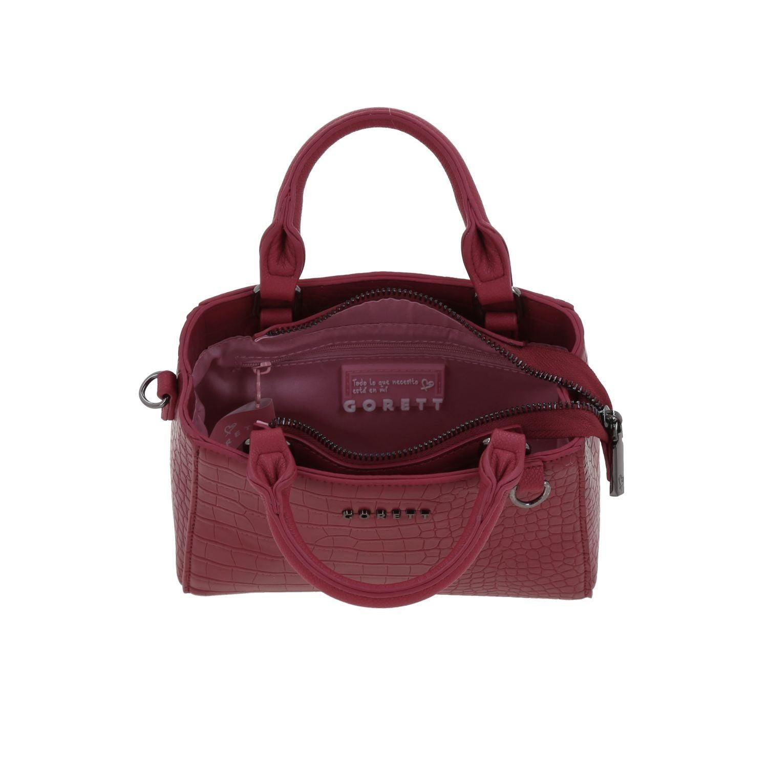 Satchel para mujer Gorett Denneny en símil de piel con detalles metálicos refinados. Compartimento principal con cierre seguro, bolsillos internos organizadores y asa de mano elegante. Correa larga ajustable para uso crossbody. Diseño clásico, versátil y sofisticado, ideal para cualquier ocasión.