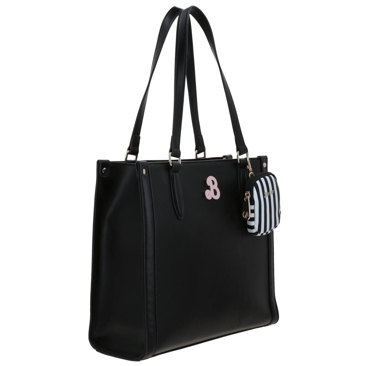 ¡Llévalo todo contigo! Tote negro Barbie by Gorett con amplitud y organización sofisticada.