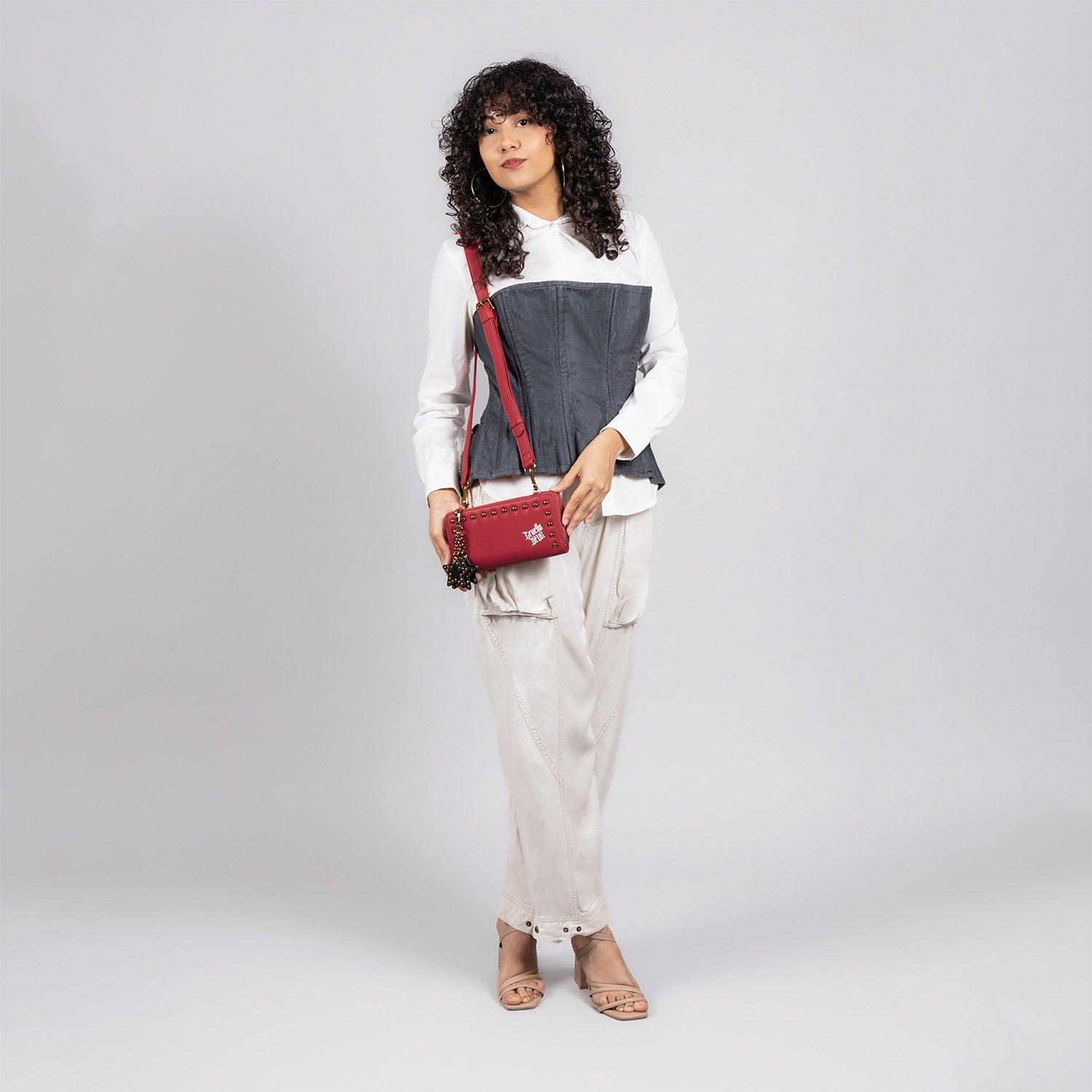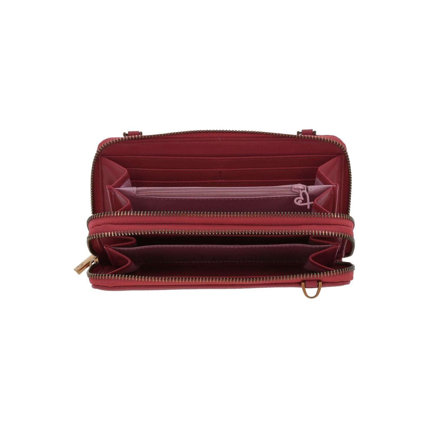 Cartera para mujer Villanas by Gorett Carlu en rojo, confeccionada en símil de piel con diseño sofisticado. Incluye múltiples compartimentos, tarjetero con espacios organizadores, billetero amplio y monedero con cierre. Broche de presión seguro. Funcional, elegante y con actitud para uso diario.