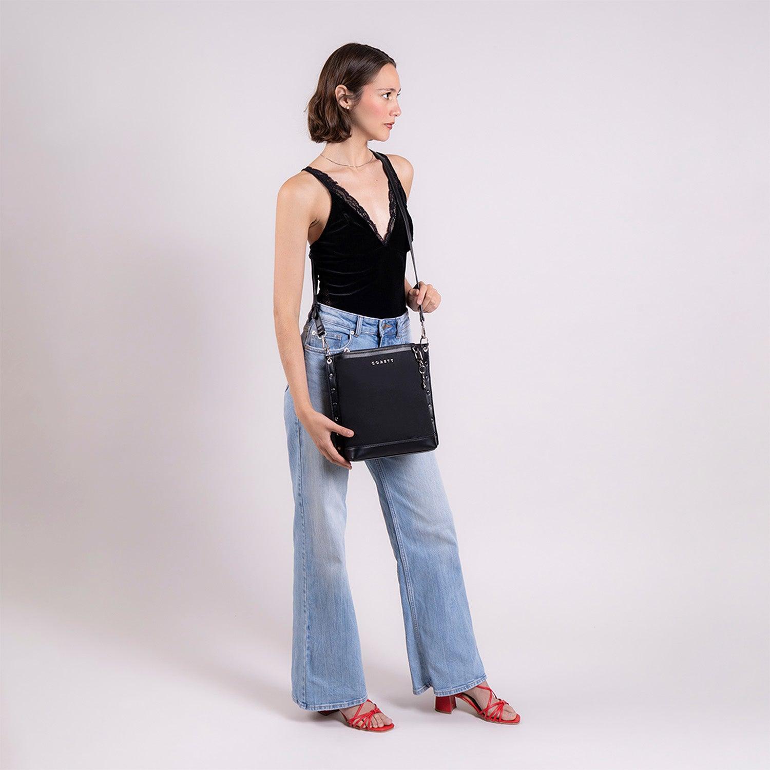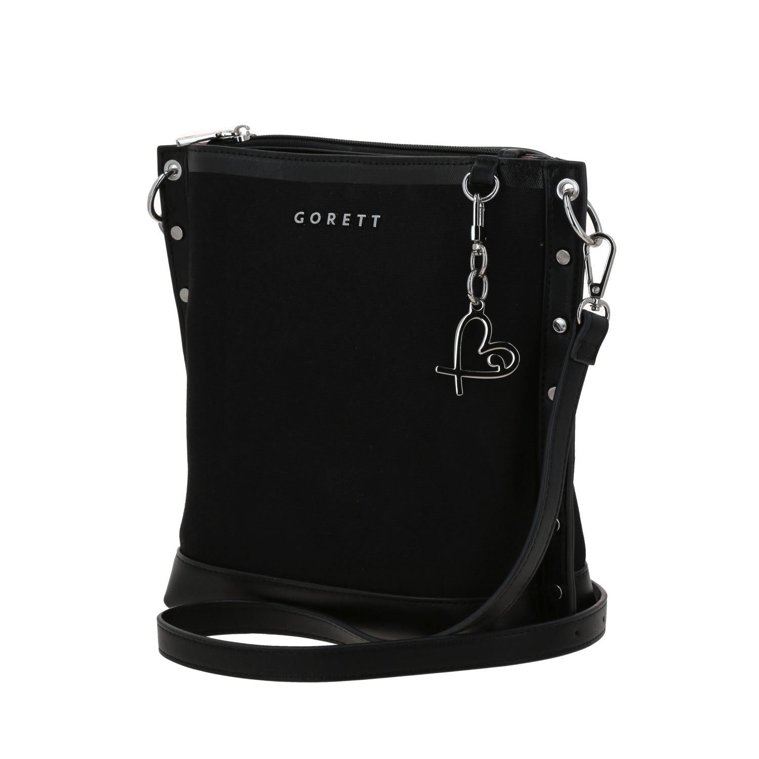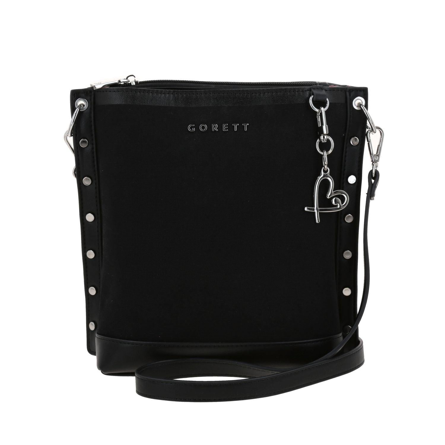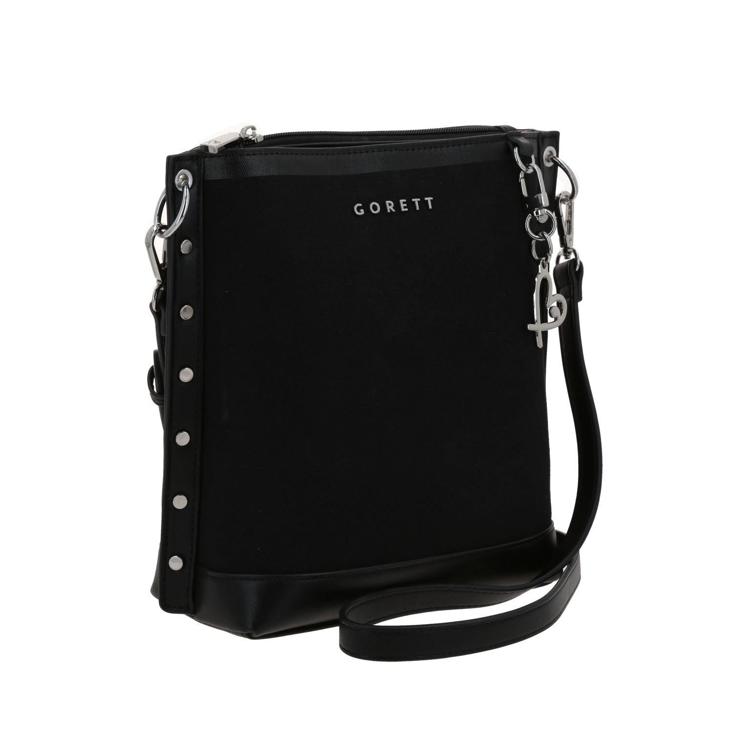 Crossbody para mujer Gorett Falet en negro, elaborado en símil de piel con acabado elegante. Compartimento principal con cierre seguro, bolsillo frontal de acceso rápido y bolsillo interno. Correa larga ajustable para uso crossbody cómodo. Diseño compacto, moderno y versátil para cualquier ocasión.