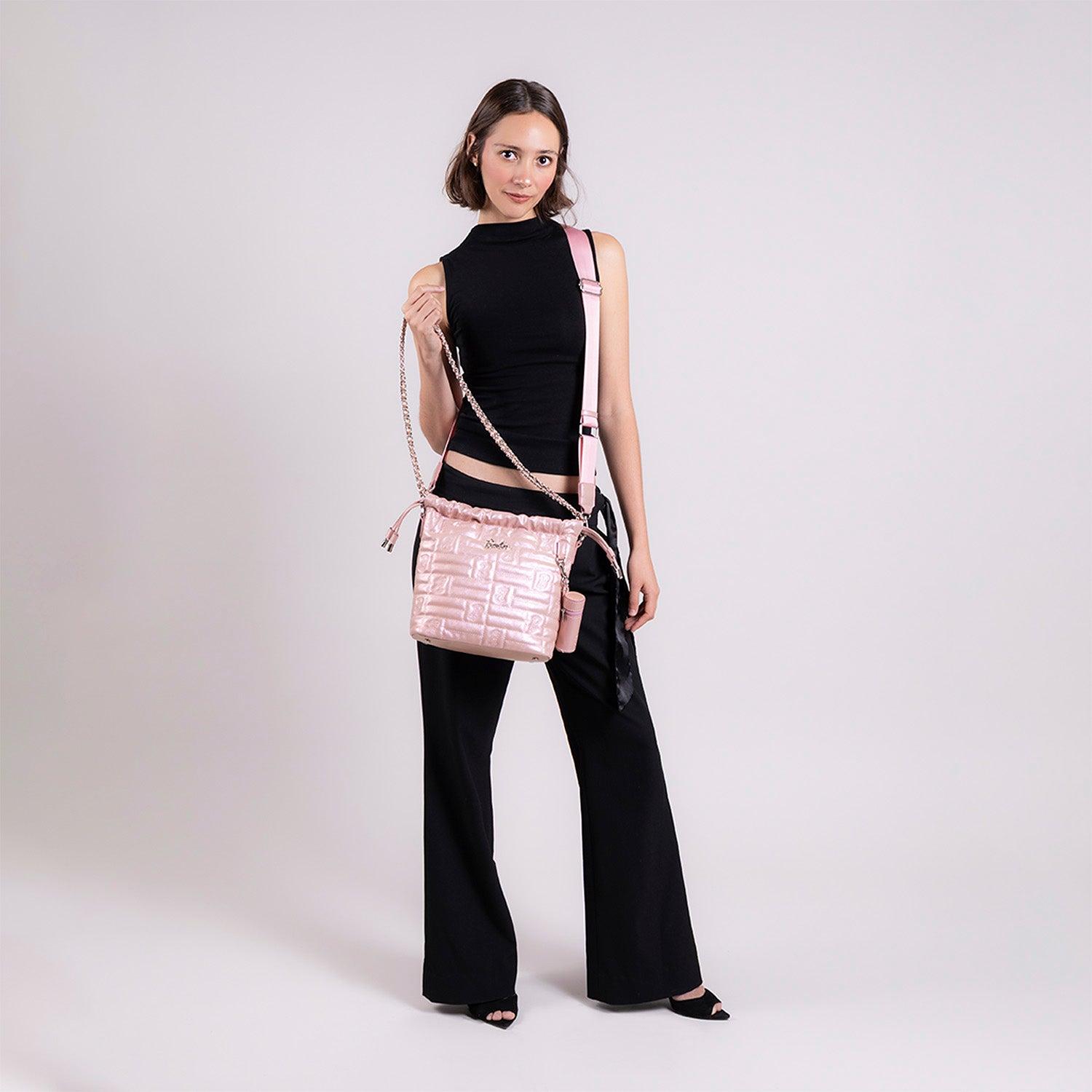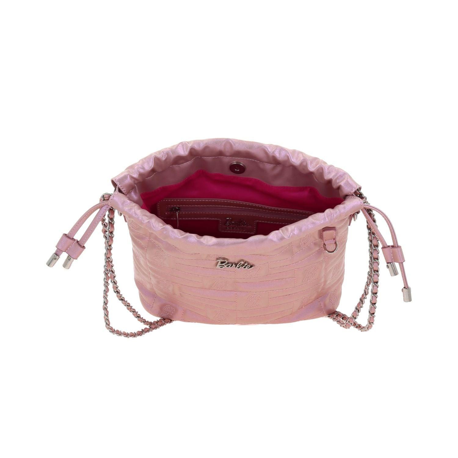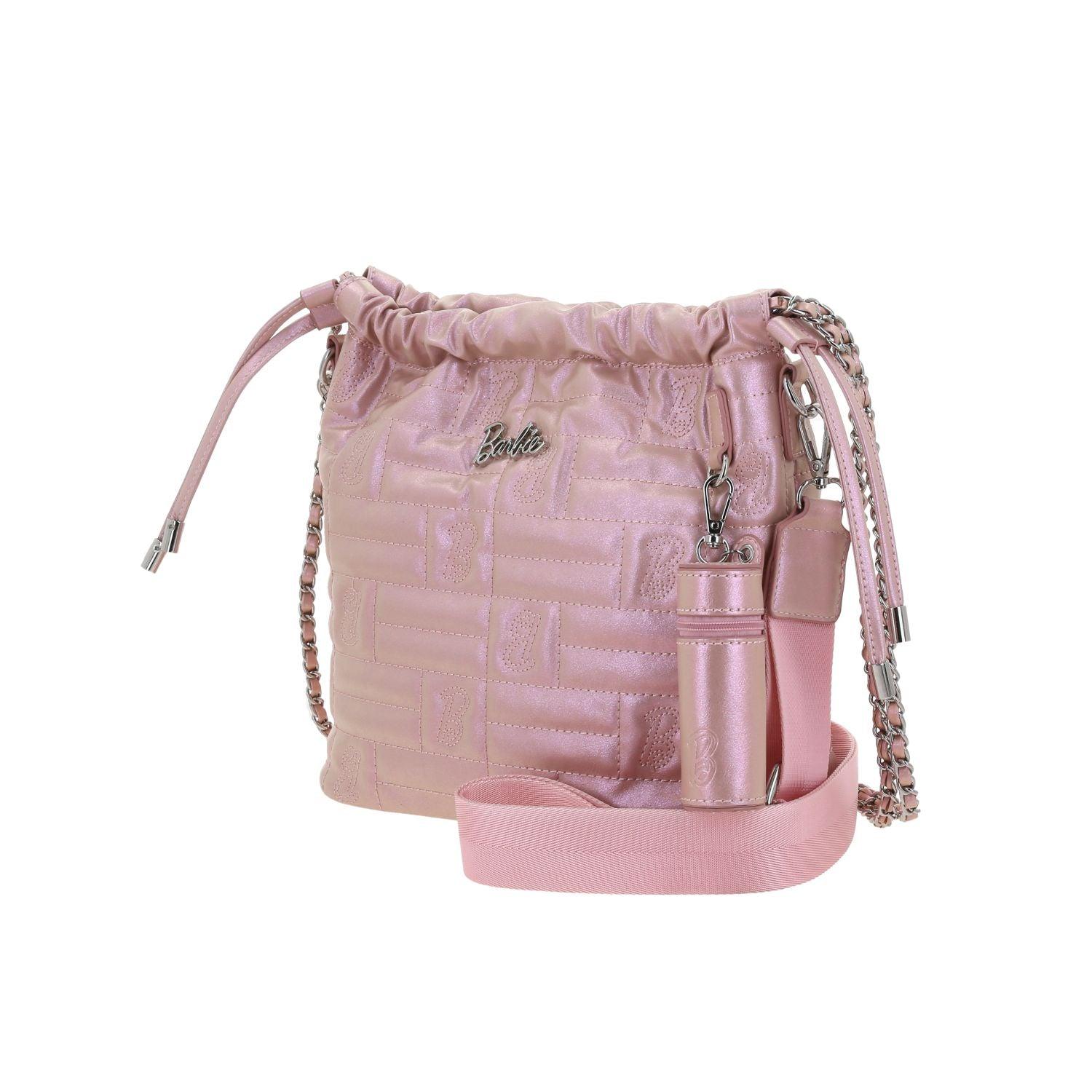 Drawstring para mujer Barbie by Gorett Roselyn en rosa, elaborado en material resistente con diseño moderno. Incluye compartimento principal amplio con cierre de cordón ajustable, bolsillos internos y correa larga. Ligero, práctico, ideal para uso diario, deportivo o casual con estilo juvenil