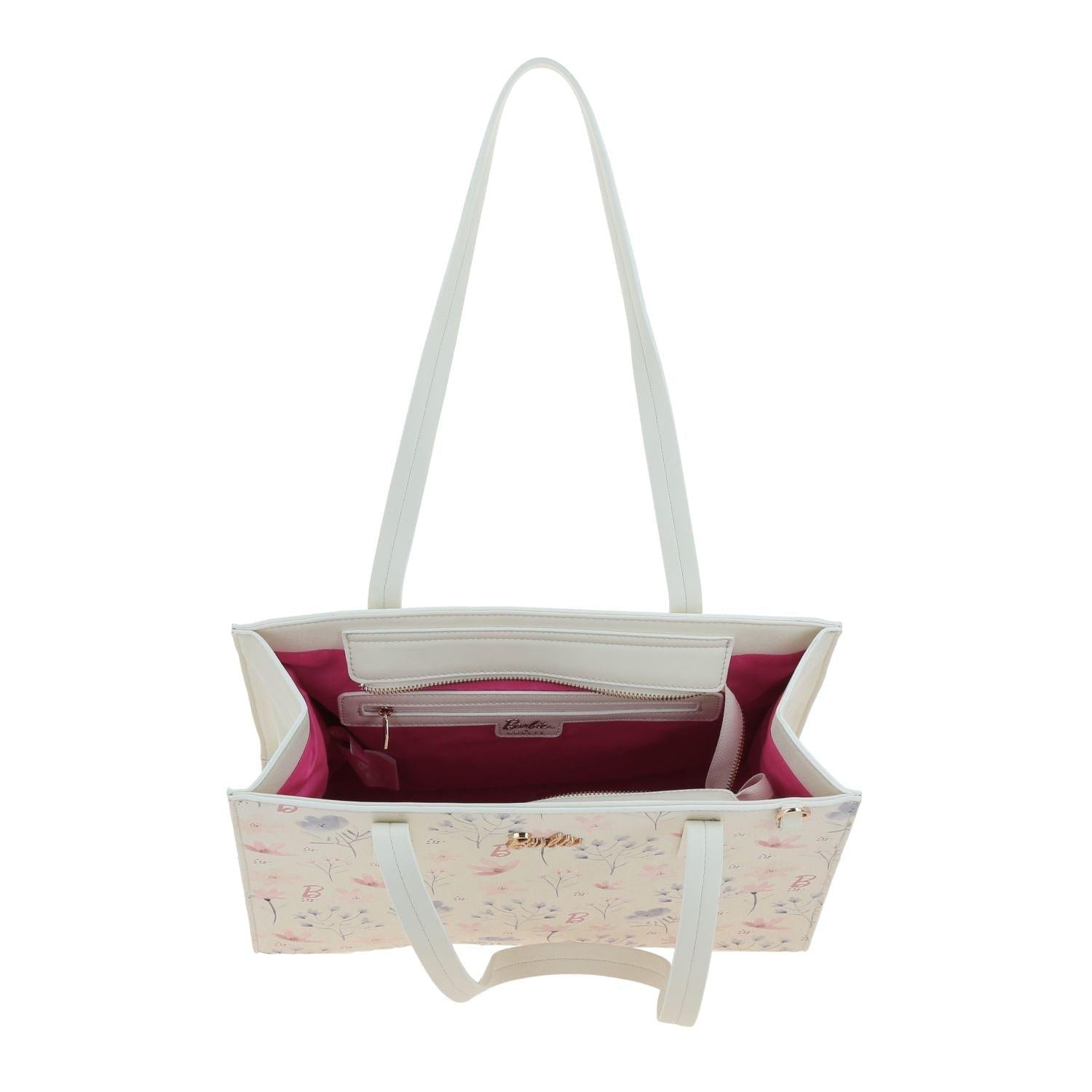 ¡Destaca con estilo! El tote Barbie by Gorett blanco combina elegancia y funcionalidad, con compartimento principal con cierre, bolsillos internos y asa de hombro para tu comodidad diaria.