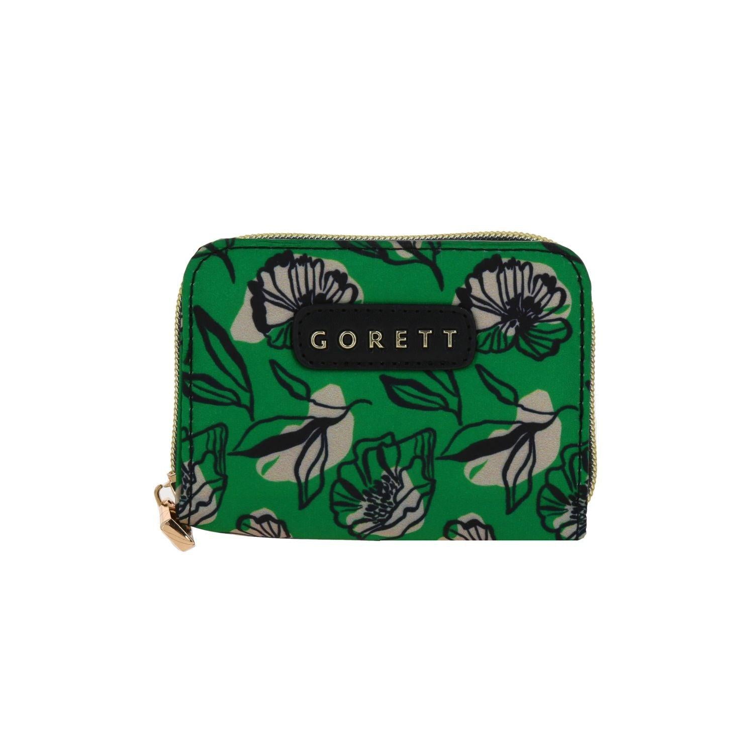 Cartera Gorett Panth en color verde, perfecta para mantener tus esenciales organizados con estilo. Esta cartera cuenta con apertura con broche de presión, billetero, tarjetero interno con 6 espacios para tarjetas lisas o con relieve, monedero con cierre y doble compartimento interno para mayor comodidad. Hecha de 100% poliéster, ofrece durabilidad y diseño elegante. Medidas: 11.5 cm largo, 9 cm alto, 3 cm ancho. ¡La cartera que combina funcionalidad y sofisticación en cada detalle!Material